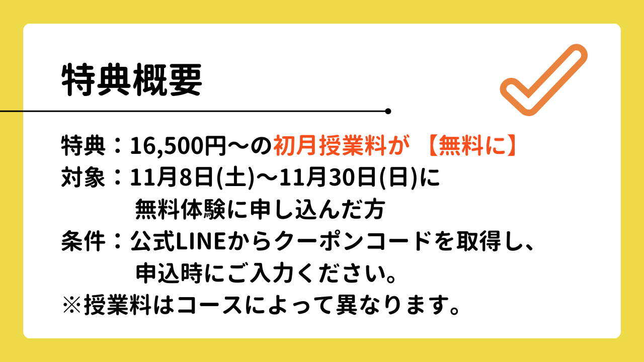 対象:11月8日(土)〜11月30日(日)に無料体験に申し込んだ方