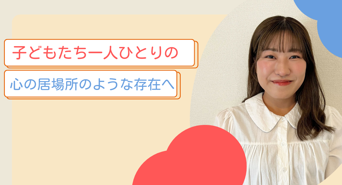 子どもたち一人ひとりの心の居場所のような存在になりたいです。「大人」と「子ども」という線引きなく、同じ一人の人間として関わる中で、みんなの素敵なところをたくさん見つけて、伝えていきたいなと思っています。私自身、いつまでも子ども心を忘れずにまっすぐ夢を追いかけて生きているようなところがあるので、「こんな大人もいるんだ!」と人生にワクワクしてもらえる、そんな存在になりたいです!
